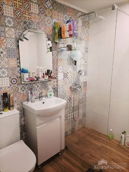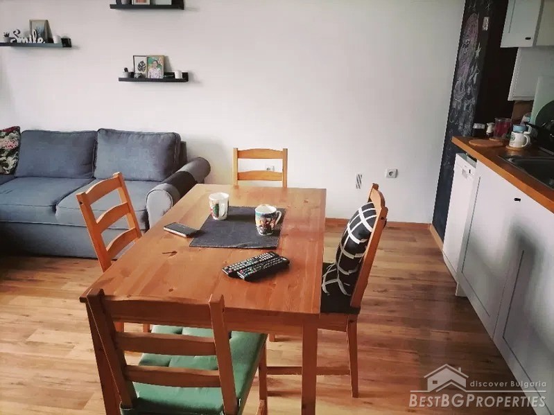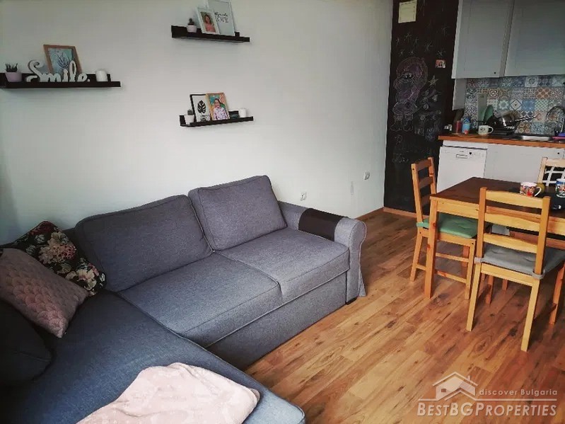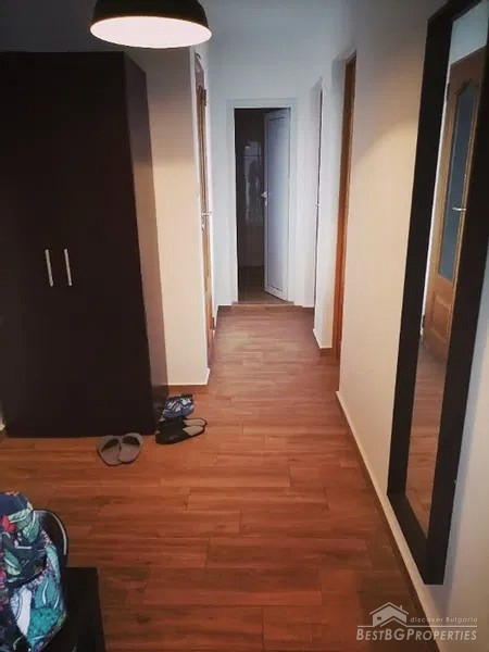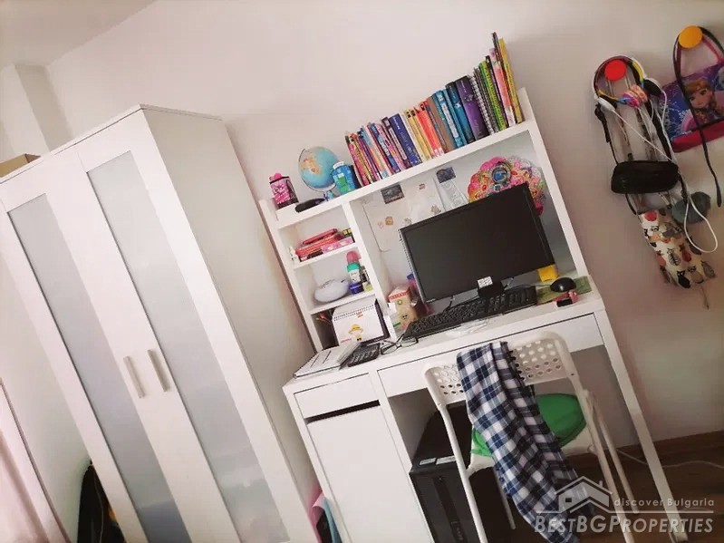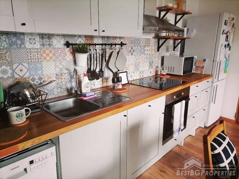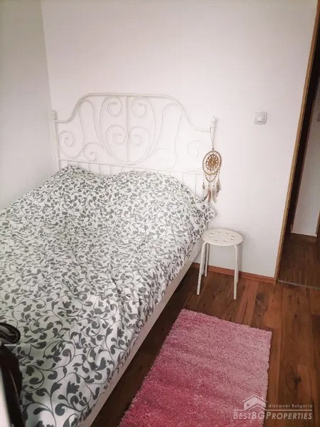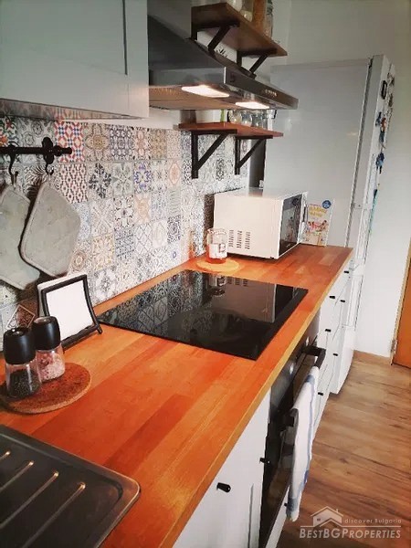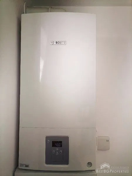 The finishing is turnkey - laminated parquet in all rooms, terracotta in the corridor, PVC windows, terracotta and faience in the bathroom. The heating is via gas with a gas boiler - BOSCH and radiators. The apartment has a fully equipped kitchen from IKEA, as well as the rest of the furniture.