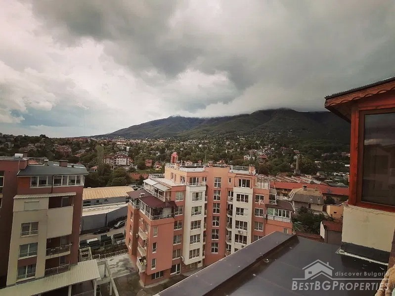 The apartment has the following layout: entrance hall, living room with kitchenette, two bedrooms, bathroom with toilet, laundry room, a large terrace with access from all rooms with beautiful views of Vitosha Mountain.