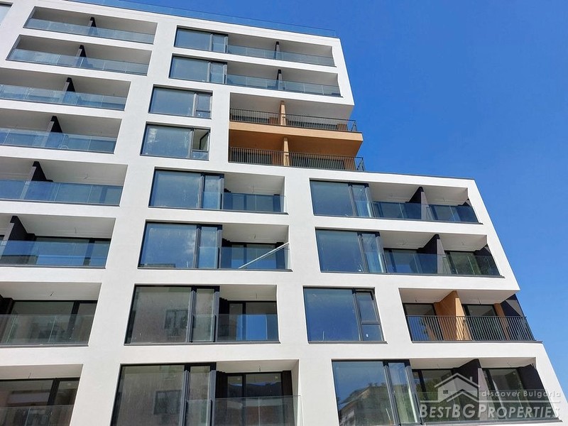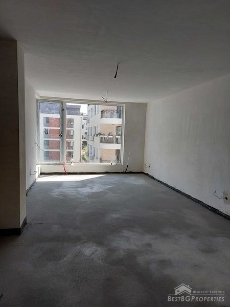 The apartment is delivered on putty and screed, offering the opportunity for you to customize and finish it to your preferences. It is fitted with high-quality window joineries, cold-resistant granite flooring on the balconies and glass railings, an armored front door, and a heating system also have been installed. The apartment also comes with a built-in wiring for air conditioners.