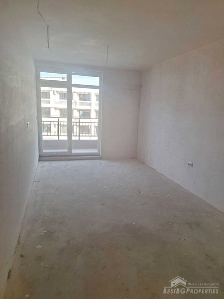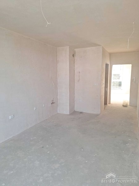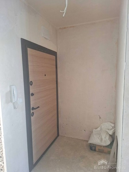 The apartment has a total living area of 56 sq m. It consists of a spacious living room with kitchenette and terrace, bedroom, bathroom with toilet and a hallway. The exposure is towards east/west. The apartment requires final finishing. It is sold equipped with an entrance door, with installed sockets, water pipes, wiring. The walls are plastered, the floors cemented and putty on the ceilings.