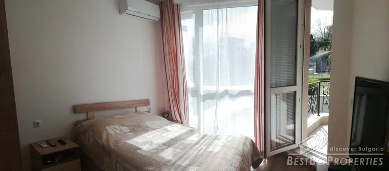 The building has a maintenance fee, security, parking, internet, TV, barbecue and a playground. The apartment overlooks the quiet and beautiful yard. The property is near the Sea Garden and 10 minutes on foot from the sea. The center of Varna is 15 minutes by bus.