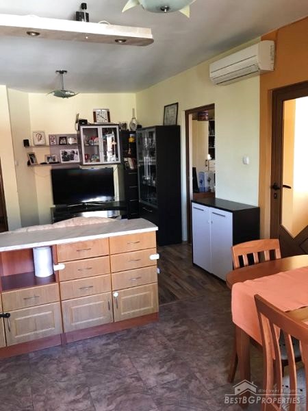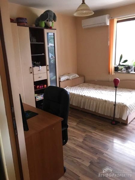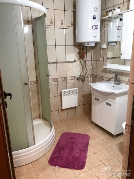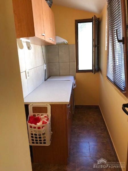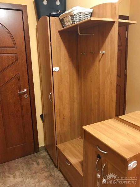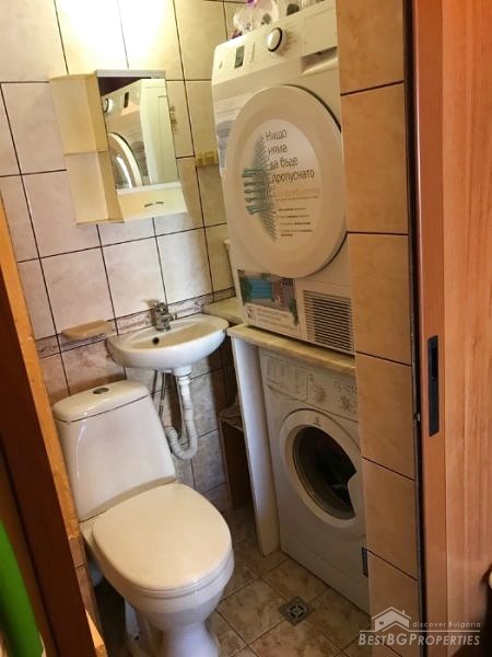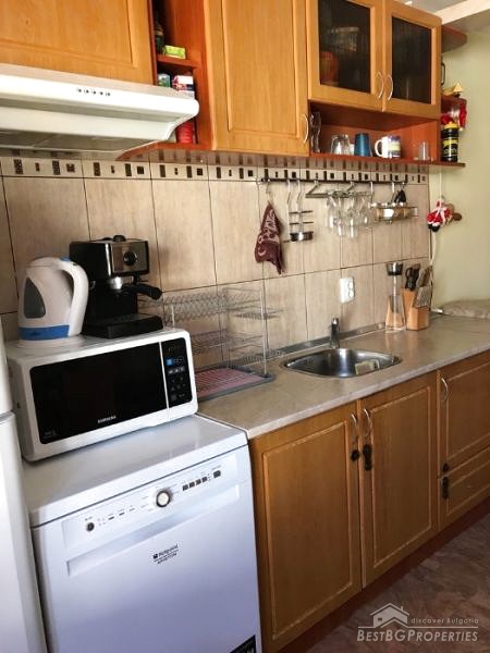 The property is for sale fully furnished and equipped with everything necessary - refrigerator and washing machine, dishwasher, microwave, three Fujitsos air conditioners, all furniture. The finishing is turnkey – PVC window frames golden oak, isolation, latex walls, laminate flooring, granite, faience and terracotta, etc.