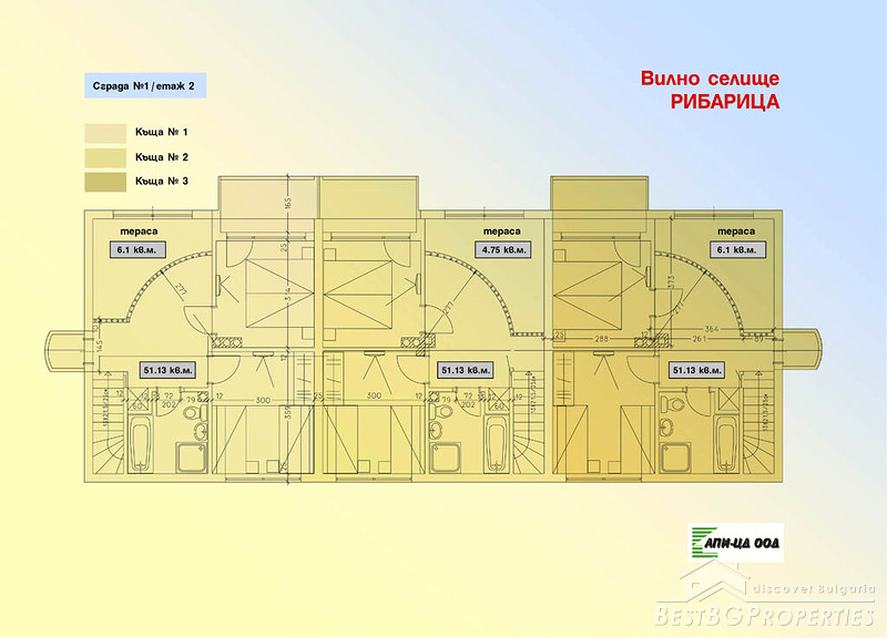 The project of Ribaritsa consists of 5 newly built houses with different sizes.