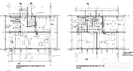 Second floor - master bedroom with bathroom and toilet, large children's room (for two children), second children’s room, bathroom and WC, laundry room.