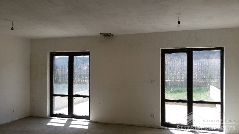 Stage of completion - plaster and cement, PVC joinery. Local heating.