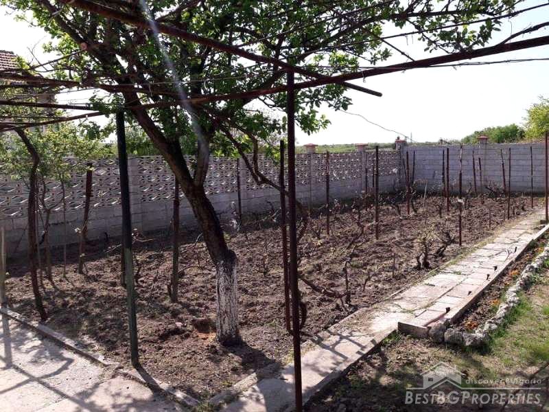 The size of the garden is 650 sq m. There is electricity, water, well, 6 rows of vines and 50 sq m vineyard, 3 park places, fruit trees and other exotic trees, barbecue and gazebo.