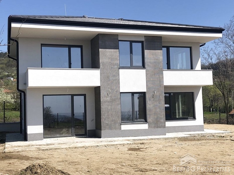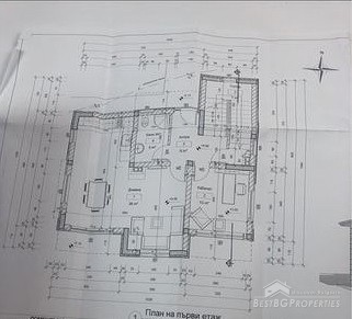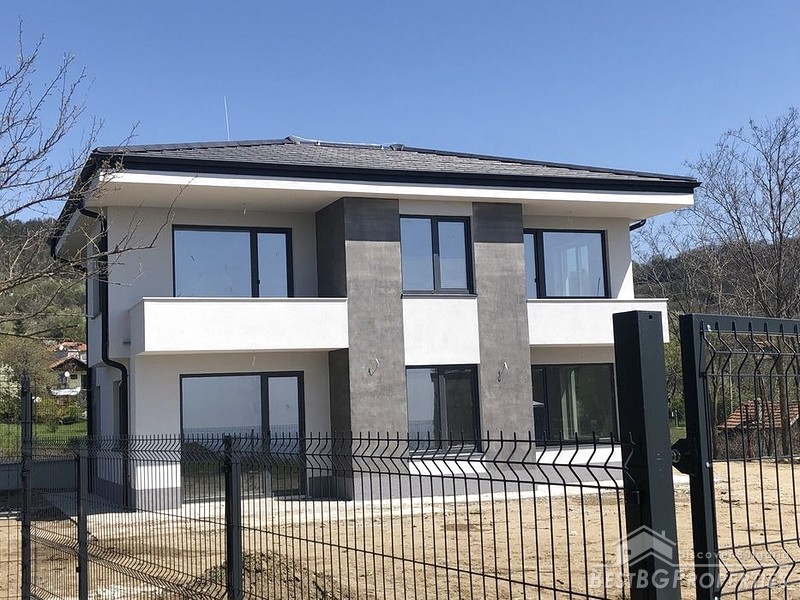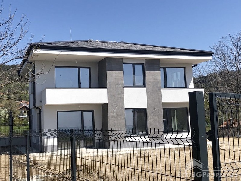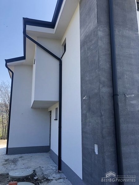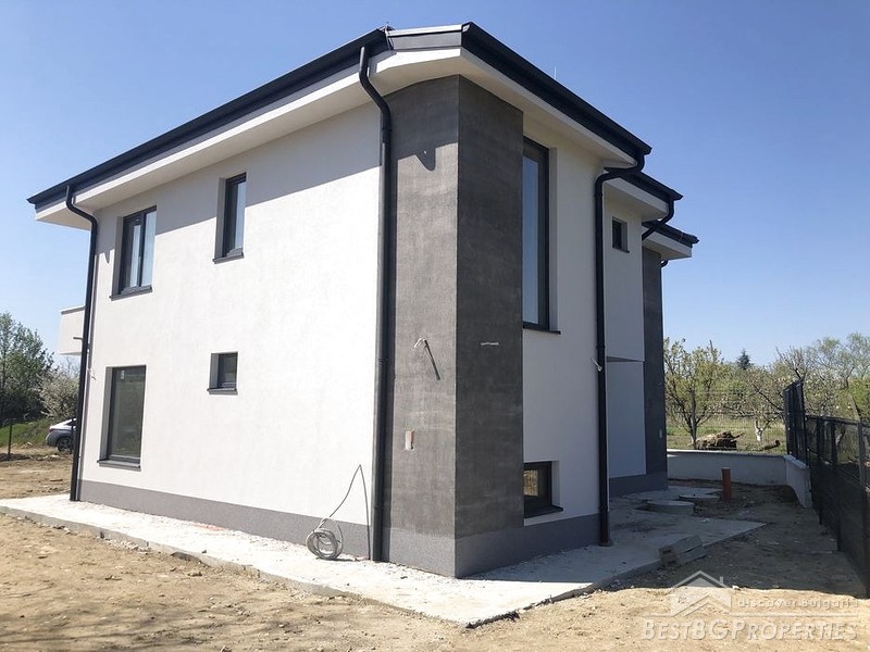 The building is monolithic reinforced concrete construction. The roof is tiled with Tejas Borja tiles made in Spain. Inside the house meets the Bulgarian standards of finishing – plaster and putty, piping for underfloor heating and cooling on both floors. The final finishing is left for the future owner.