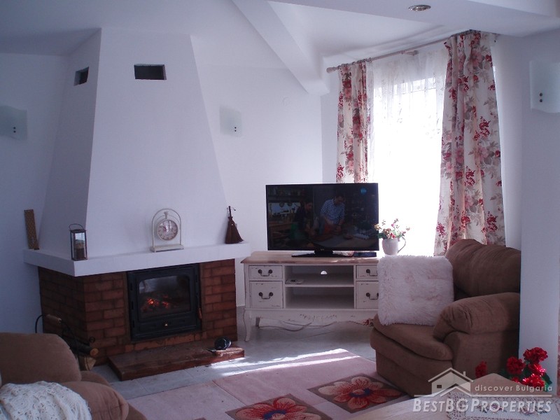 Second floor - living room with dining area, furnished kitchen, bathroom and toilet, laundry room. There is also a working fireplace.