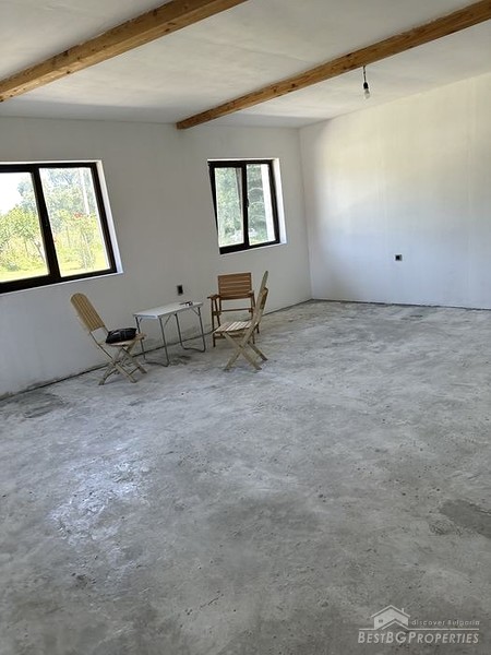 - First floor - open plan living room, kitchen dining room, 2 bathrooms, 2 bedrooms, closet. This floor requires final finishing. The completion includes putty and latex paint, installed doors, high-class joinery, electricity wiring and piping for the local heating and water.