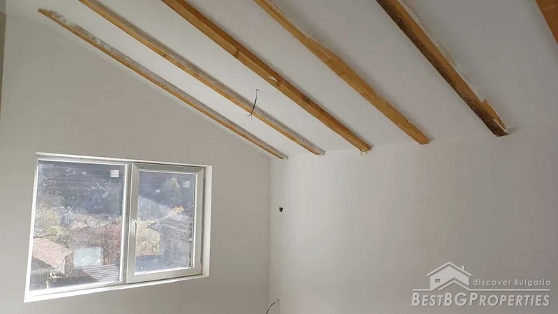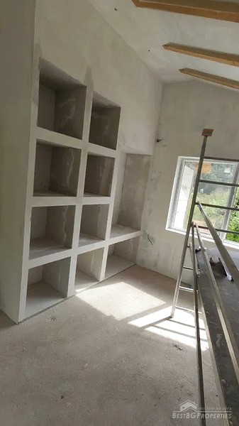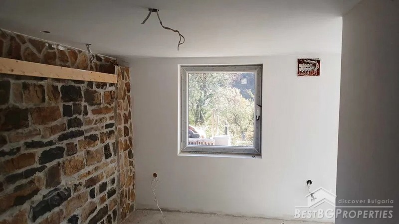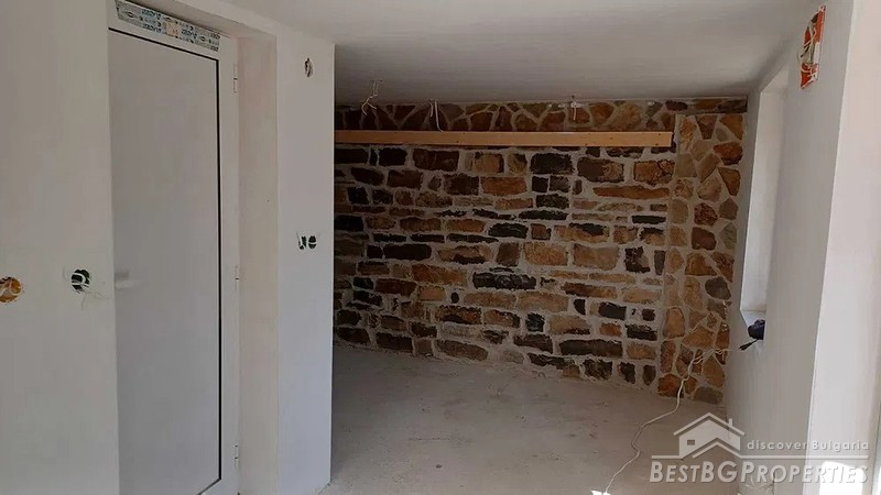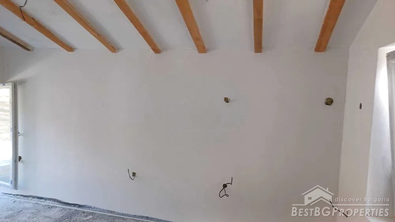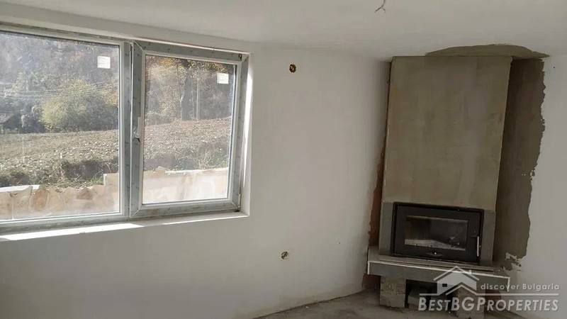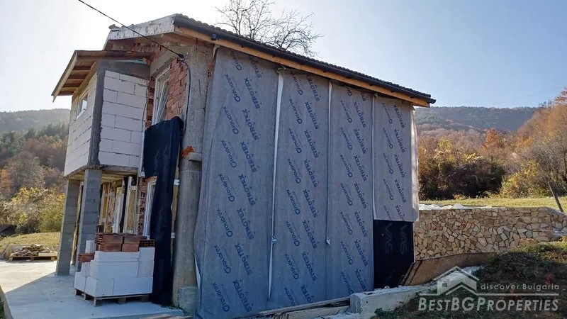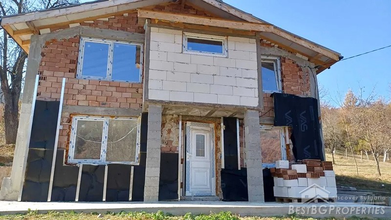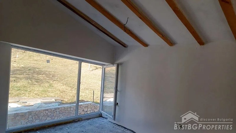 The building is newly built, on two floors. On the first floor there are two rooms with a brick fireplace, a brand new fully furnished bathroom. On the second floor there are two large rooms and a bathroom. The property is supplied with electricity and water. There is a new septic tank. All the windows in the house have new window joinery. There are French windows on the second floor.