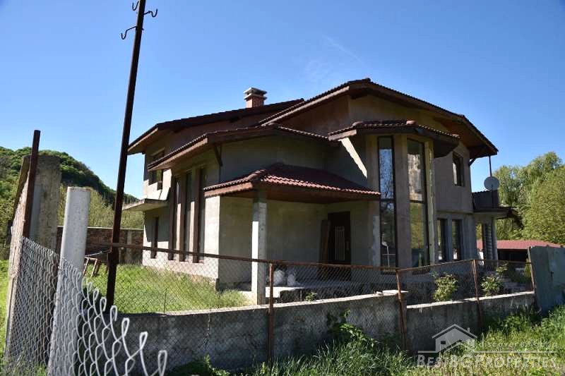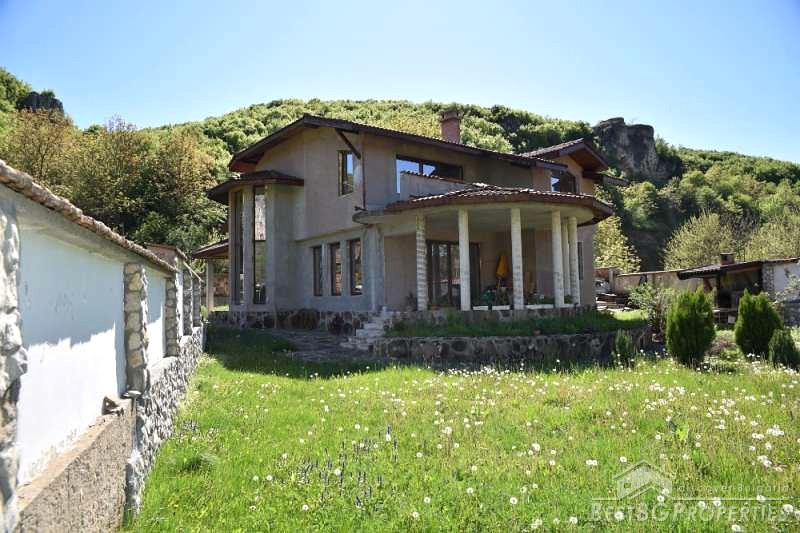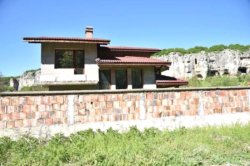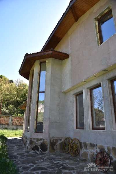 The house is surrounded with beautiful scenery and rocks. It is finished according the Bulgarian standards – on plastering and putty. The final finishing is left for the future owner. The house has four bedrooms, dining room, two bathrooms and two toilets + pantry and a laundry room. There is also a boiler room and a garage.