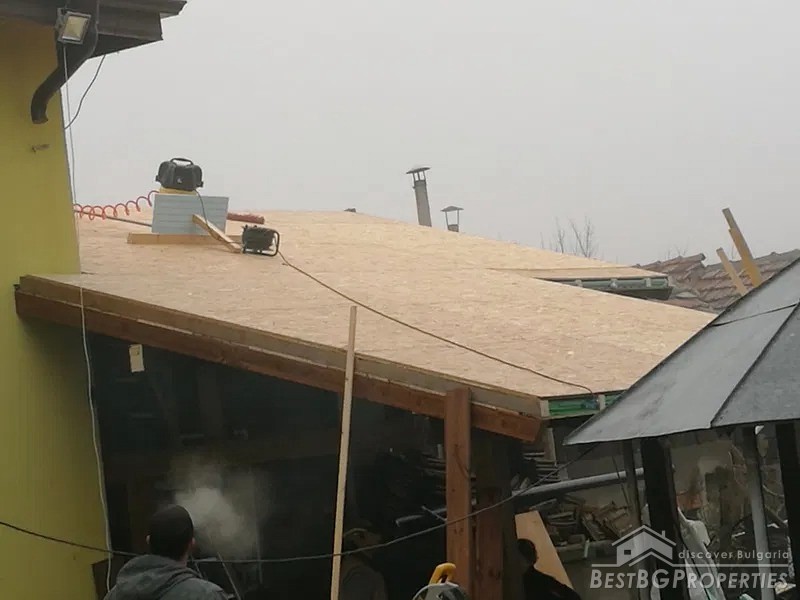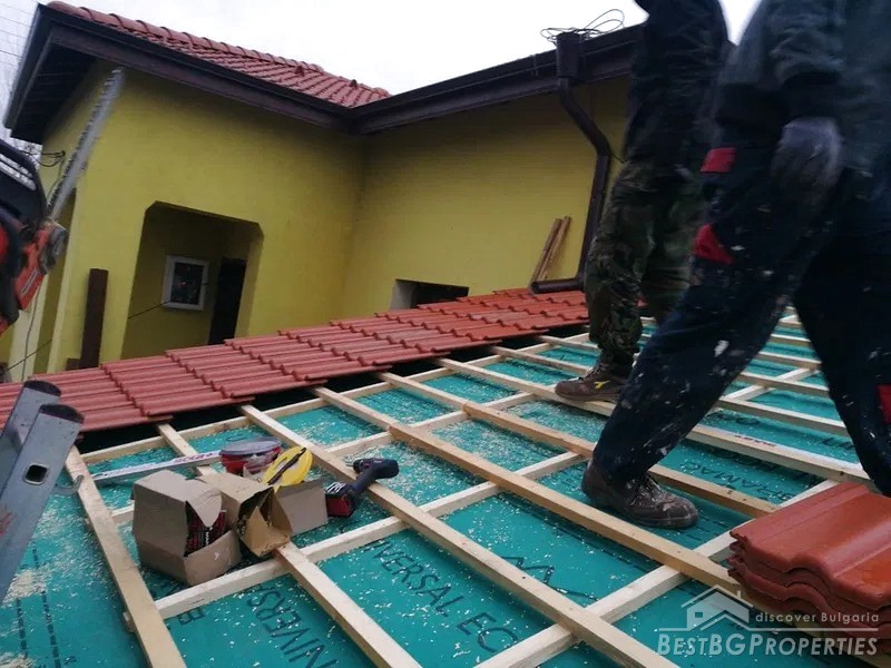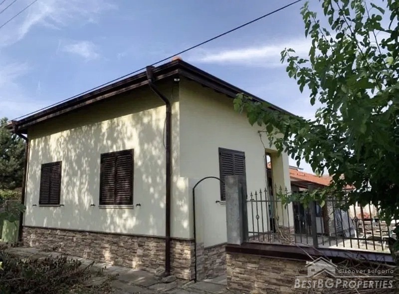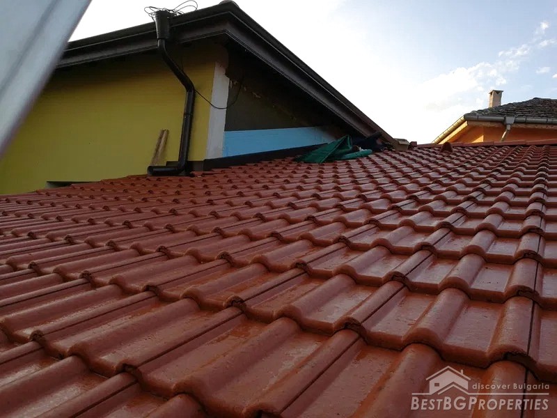 The house has a total living area of 120 sq m. It is built on a plot with size 1500 sq m. The home features electric heating, full furniture and appliances. It was recently renovated – painted walls, wooden window joineries with external blinds, brand new roof, etc.