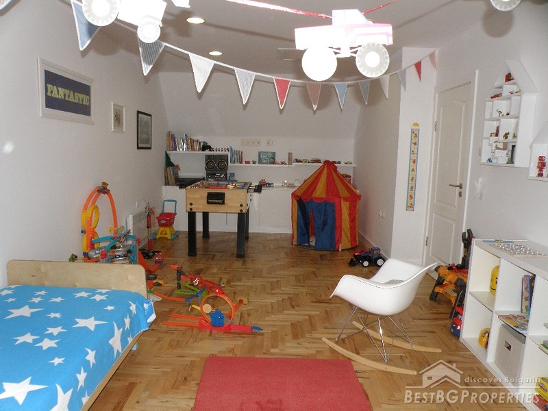 The house has built living area of 160 sq m and a yard of 700 sq m. It offers two floors and the following distribution of the premises: The first floor consists of a spacious living room with kitchen box, two bedrooms, a corridor with internal stairs to the second floor, a big bathroom, a toilet, a closet and a laundry premise. The second floor consists of two large bedrooms, a large bathroom and a corridor. On the first floor, there is also a back porch with a barbecue.
