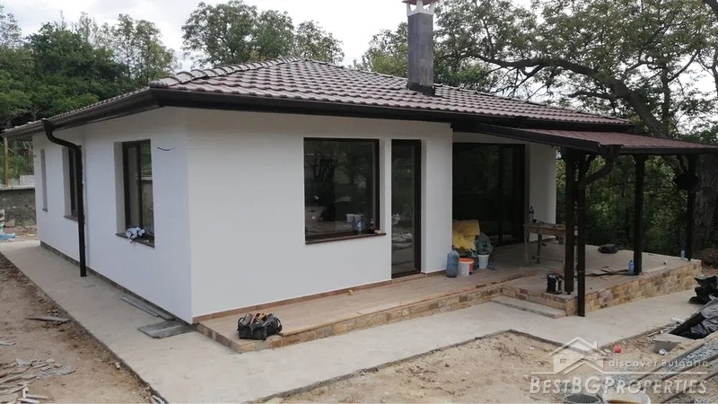 The house is sold completely finished and ready to move in. The living room is equipped with a luxurious stretched ceiling – 3x4m. Both the living room and the bedrooms are fitted with quality parquet. The bathroom is finished with faience and granite. There is piping, electrical wiring, sockets and switches – all installed.
