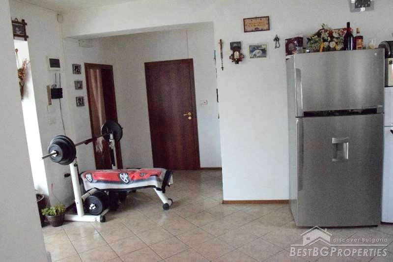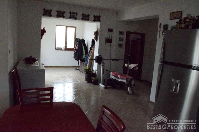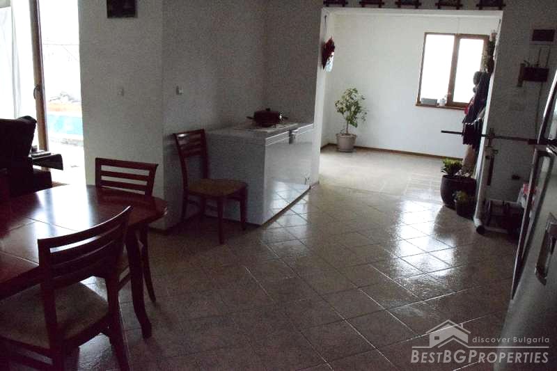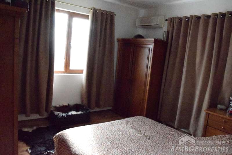 The house has total living area of 135 sq m. It is built on a plot with size 701 sq m. The house is fully furnished and equipped with all the necessary equipment and appliances. It has alarm system, there are plastic window joineries with double-glazing, in the yard there is a swimming pool, solid fence, large garage for three cars and additional farm buildings. The house has external and internal insulation.