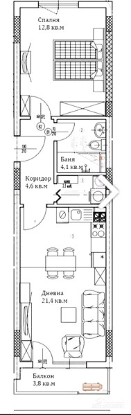 The apartment is internal, very warm and cozy. It consists of an east-facing living room, a bedroom, bathroom with toilet and a closet.
