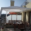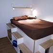 The interior doors are custom made. The furniture and equipment are very functional and stylish. The large balcony is equipped with a tent and benches and offers great city views.