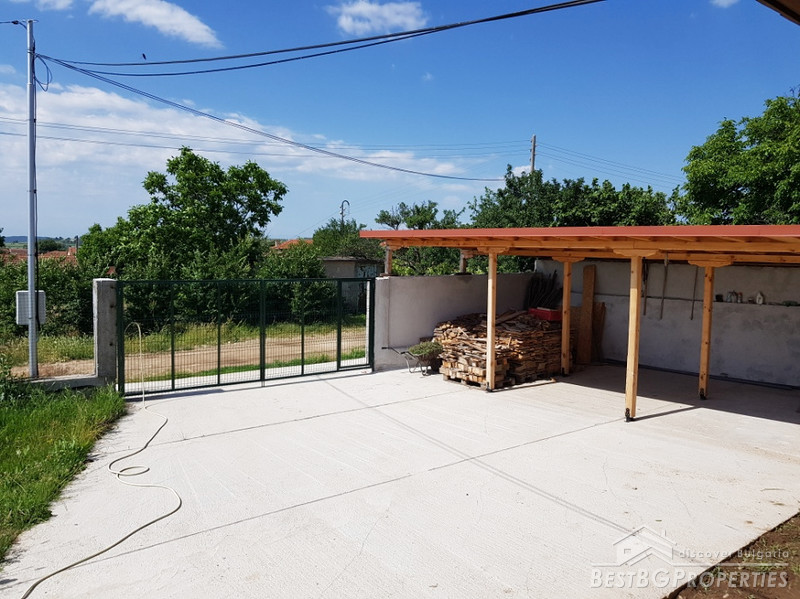 The house is a new construction. Built with reinforced concrete belt and outside isolation on the walls and the roof, which makes it warm in the winter and cool in the summer. The house consists of a living room with a kitchen box, one bedroom with a wardrobe, a second bedroom, a bathroom with a toilet and a summer garden.
