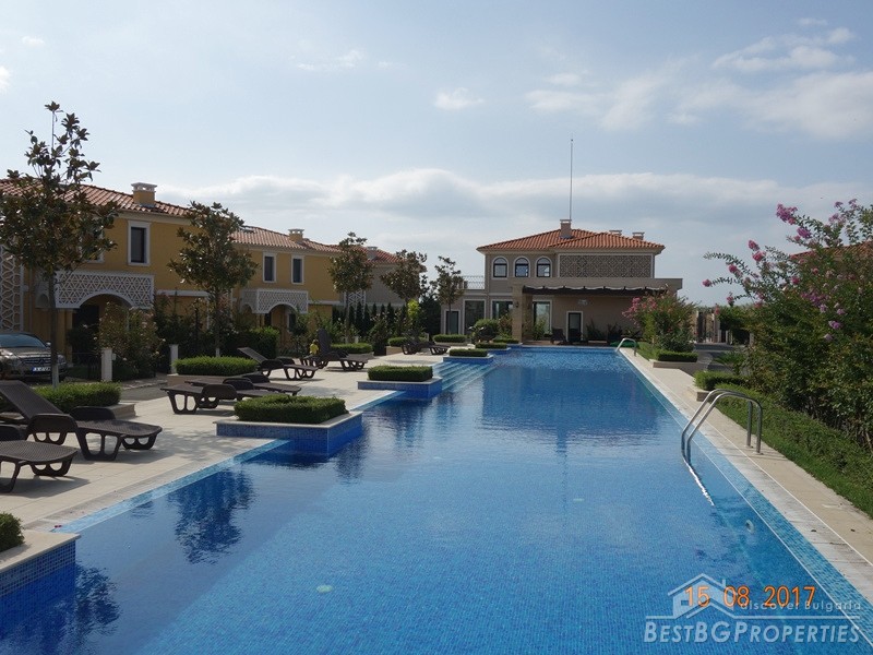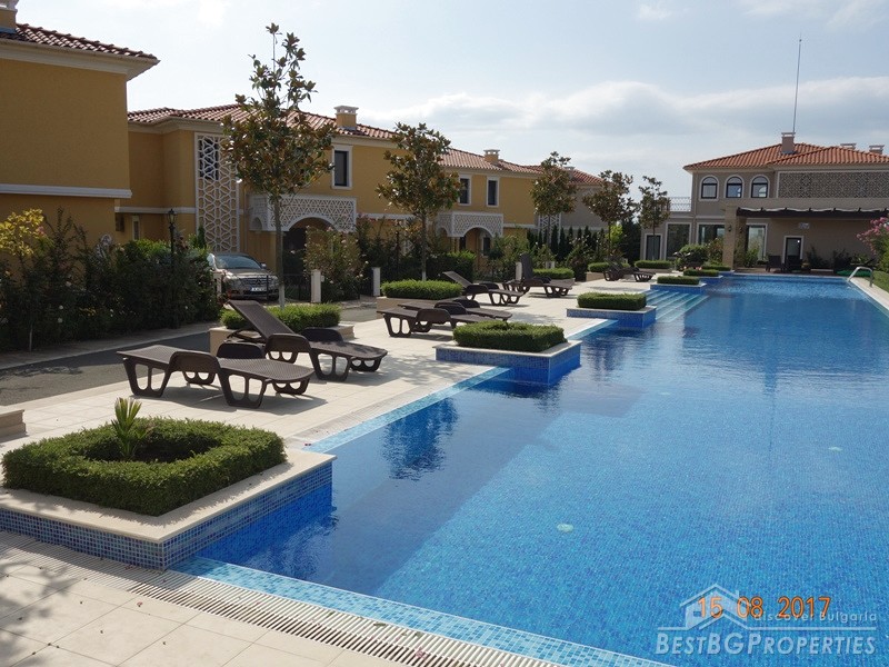 In front of the house, on the territory of the complex there is a large swimming pool with a children's area. There is security, automatic irrigation and landscaping.
