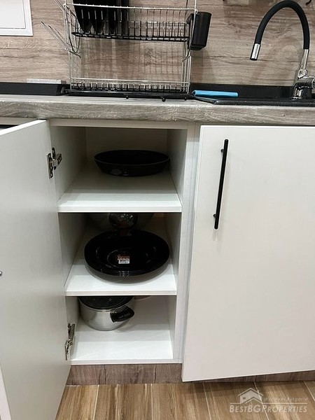 The apartment has a total living area of 44 sq m. It is fully furnished, ready to move in. The studio is equipped with a large double bed and a sofa bed. There is a refrigerator, washing machine, TV, air conditioner.