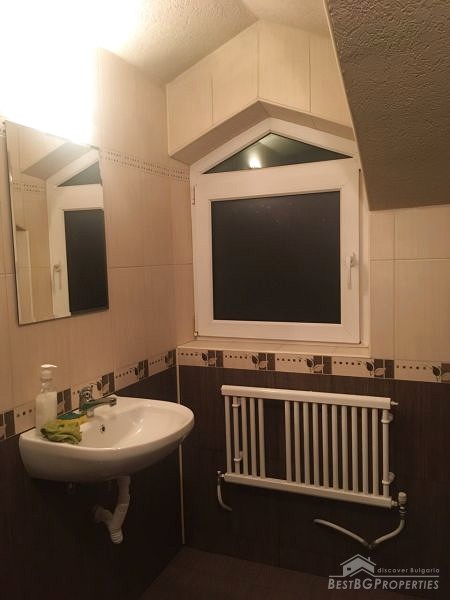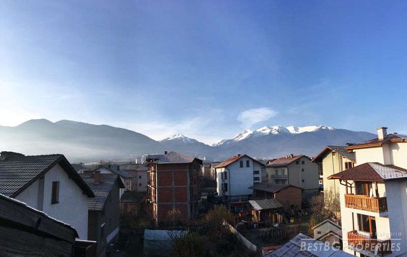 The apartment consists of two bedrooms, a bathroom with toilet, large living room with kitchen box and a terrace facing Vihren peak. The apartment is on the fourth (last) floor, but there the roof is isolated and heated. The building has 10 apartments in total and NO service fee per month. The heating is local, on pellets. There is Act 16.