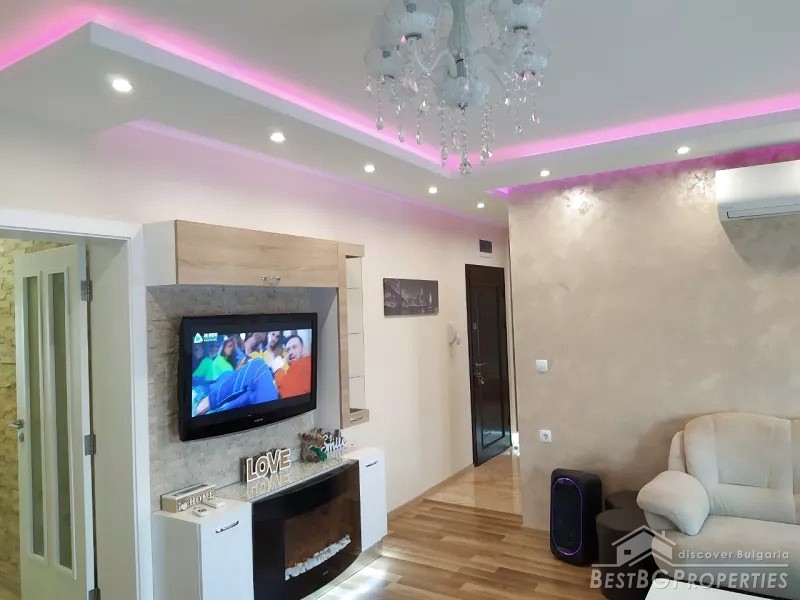 The property is for sale as on the pictures - with all furniture and appliances. It is luxurious, with custom MDF furniture, armored front door, electrical appliances, three brand new, air-conditioning - Daikin, three TVs, built-in fireplace, built-in toilet, built-in hairdryer in the bathroom and more. The plumbing and electrical installations have been completely replaced. There is hidden lighting in the suspended ceilings.