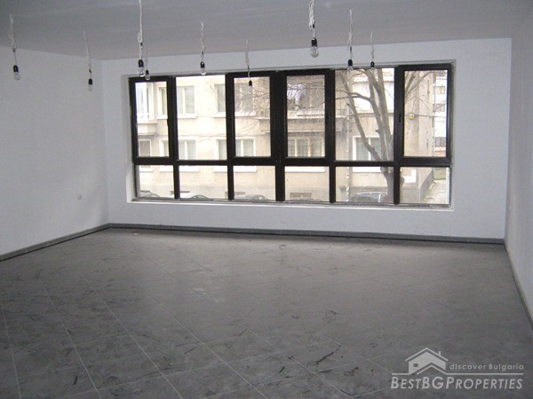 The office is south facing and overlooks the street. Its total area is 63.40 square meters and consists of one spacious room and bathroom. The office is finished "on key" stage with terracotta floorings, latex painted walls and ceilings, PVC window joineries with large panoramic windows. The premise is very bright and spacious. The building was put into operation and comprises act 16.