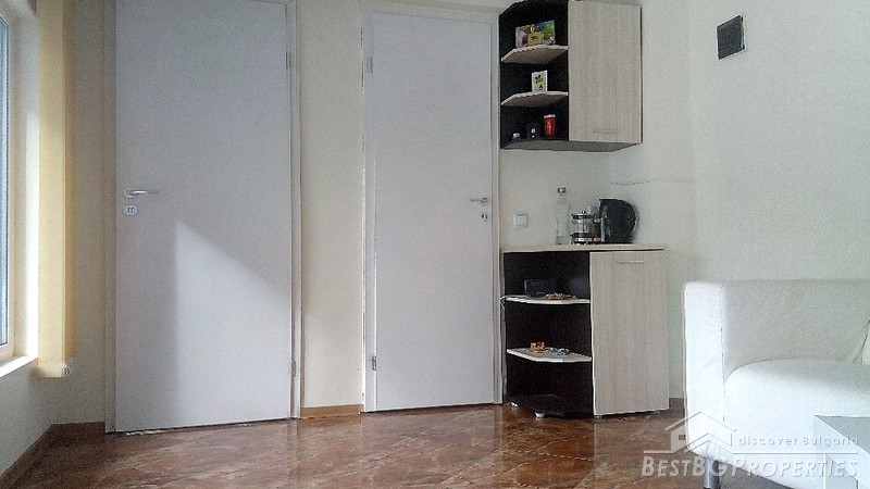 The stage of completion is turnkey - there are Italian granite tiles in the two main rooms and sanitary faience in the toilet, high quality window joineries and windows, security system and WiFi.