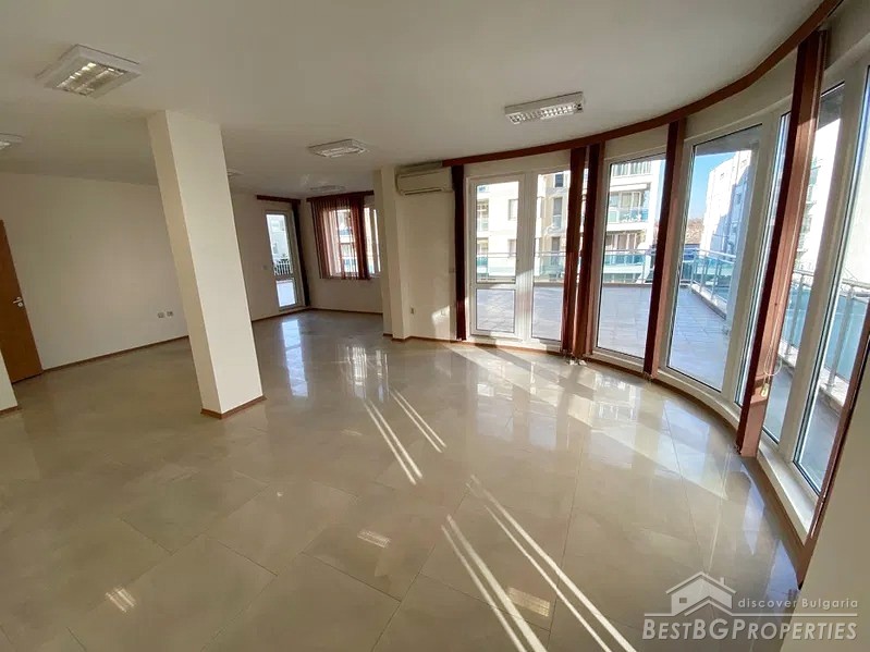 We are selling a large and spacious office with an area of 155 sq m. The inside clean-living space is 85 sq m. The remaining 70 sq m is a large panoramic terrace.