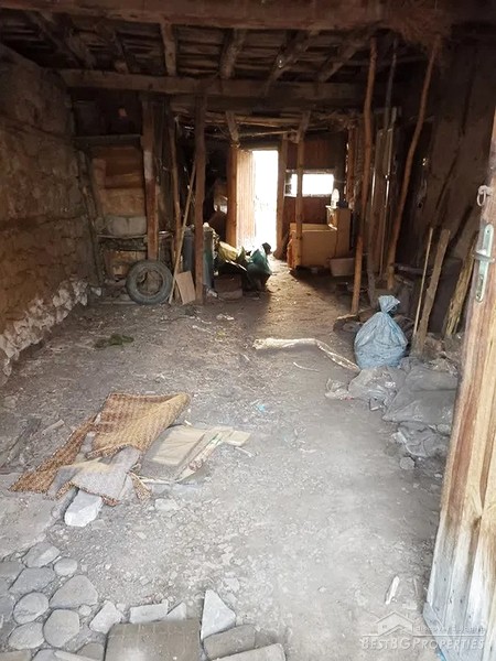 The house is very old, stone and adobe built, two-storey. Next to the house there is an external garage, and in the yard, there are many additional farm buildings for farm animals and a large barn for hay. The yard is accessed from the street via a large wooden gate, which fits a car.