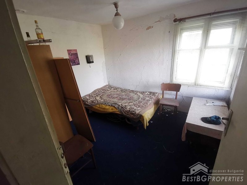 The house has a built area of 45 sq m. It is brick construction, finished in 1980. The building is in good structural condition, but requires full renovation inside. It is sold together with some old furniture. It is supplied with electricity and there is a sink inside.