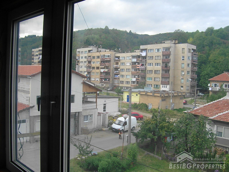 The apartment is located in a small but very well developed town in North- West Bulgaria. The town is in the mountains at the foot of peak Kom which is one of the highest peaks in Stara Planina Mountain. The apartment is on the 3rd floor of a residential building located just 15 minutes from the town center but there are lots of shops and cafés around it as well. It has 68 sq m of living area distributed between a living room, a kitchen, 1 bedroom, a bathroom with a toilet and a balcony. It has been recently renovated. The joinery is PVC. The floors in the kitchen and in the corridor are tiled and in the living room and the bedroom they are wooden. There is floor heating in the kitchen. The apartment has thermal insulation too. This apartment would be perfect as an investment as the area is getting more and more developed recently. At the moment they are building a Mall and a Penny store in the town. It has a huge potential for a ski resort and there even is a project for such. There already is a ski slope and huts in the mountain. Contact us for further information!