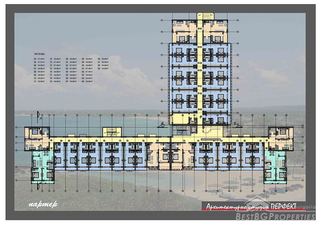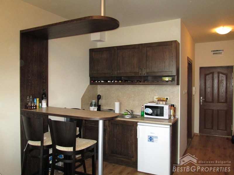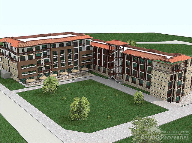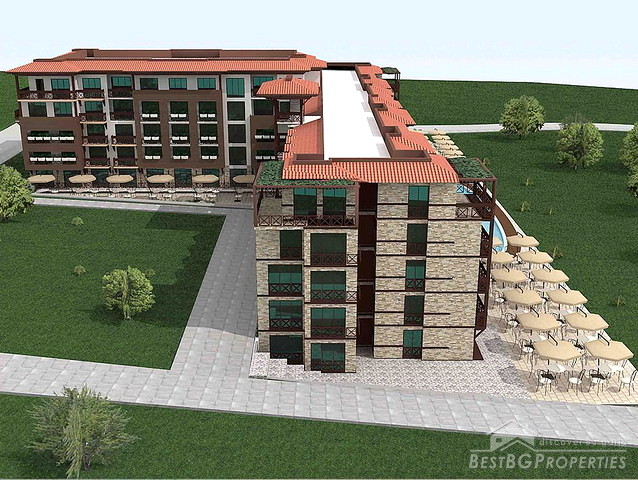 The complex consists of 168 apartments (114 studios, 42 one-bedroom and 12 two-bedroom apartments) with living areas ranging from 31.4 to 97.11 sq m.The complex offers open swimming pool and parking lot.