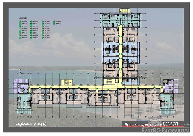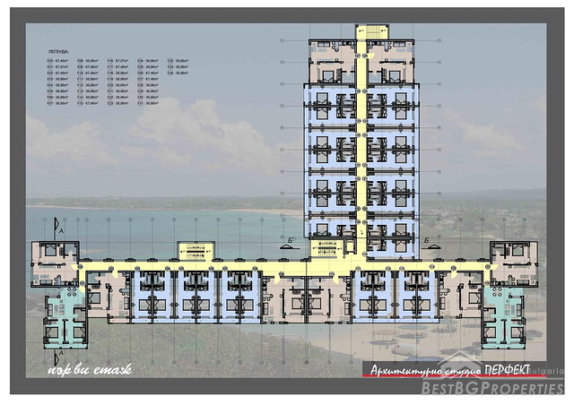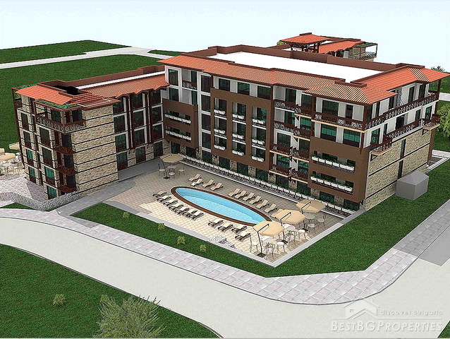 We proudly offer to you a luxurious residential complex located 400 m from the beach in the beautiful area between Sunny Beach and St.Vlas. The development has favourable location being 30 km away from the well developed city of Burgas and 29 km from The International Airport.