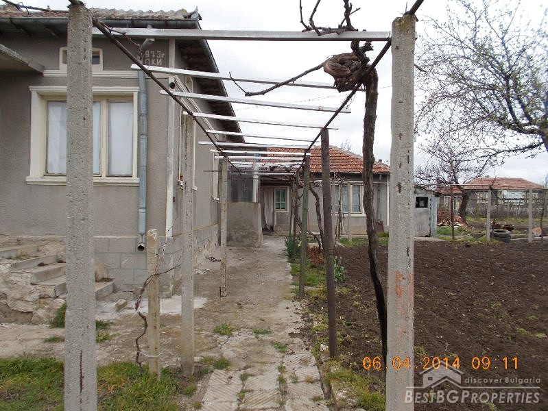 We are selling a house with an area of 170 sq m, built on a plot of land with size 2600 sq m. It consists of seven rooms, a kitchen, two entrances with entrance halls and two service premises. In the yard, there is a garage with an area of 20 sq m and additional farm buildings. The plot is flat and perfect for agriculture.