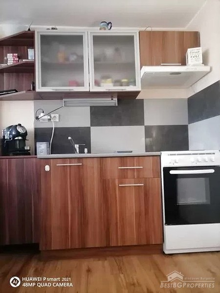 The first house has an area of 65 square meters. It consists of two rooms, a hallway, a laundry room and a bathroom. The flooring in the rooms and the corridor is laminate, and in the bathroom and the wet room - tiles. The ceilings are made of plasterboard, the walls are plastered. The windows have been replaced. There is external insulation.