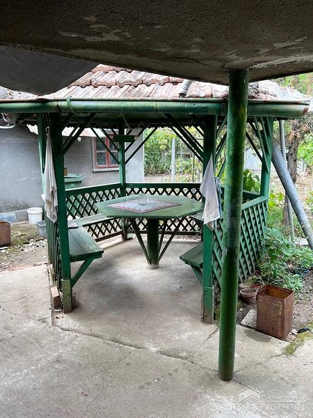 This property is suitable for recreation and permanent living away from the city noise. It boasts central location in the village, facing an asphalt street by 30m. The property features a garage, 4 bedrooms, dining room, hall, kitchen, living room, basement, bathroom, toilet, small workshop, and additional outbuildings. It comes with furniture, a refrigerator, TV, agricultural tools, and other equipment. In the garden there is a gazebo with a shed and a barbecue, a recreation area and various greenery - walnuts, vines, strawberries, hazelnuts, etc.