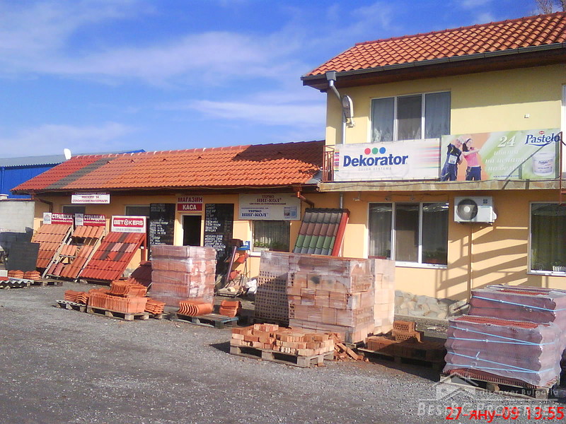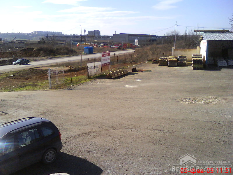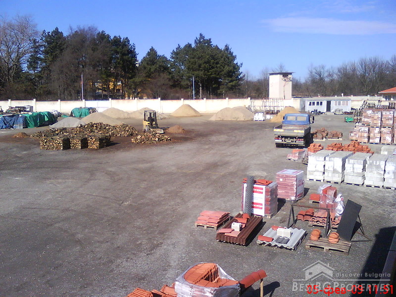 This is a huge plot of regulated land located in the town of Dobrich. It is 5800 sq m in size fully asphalted. It includes 200 sq m of offices and 360 sq m storage facilities. It is facing a main asphalted road by 60 meters. It is newly built; there is water, electricity, gas and sewer provided. At the moment the property operates as storage for building materials. It also can be used as storage for agricultural machines. The whole property is surrounded by a massive fence.
