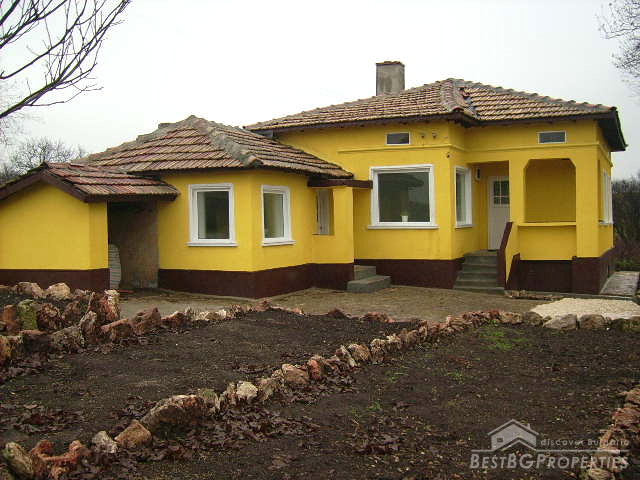 This spacious renovated house offers 90 sq m living area. It is on a single floor and consists of two entrances,corridor, two bedrooms, spacious dinning room with kitchen area and bathroom with WC.It has a big cellar and a garage made of stones. The house is finished with painted walls with latex, big PVC panoramic windows,the flooring are with terracotta. There is BBQ area and additional stone outbuildings. All facilities are available i.e. electricity,water,septic tank, a connection with a telephone land-line is easily obtainable.