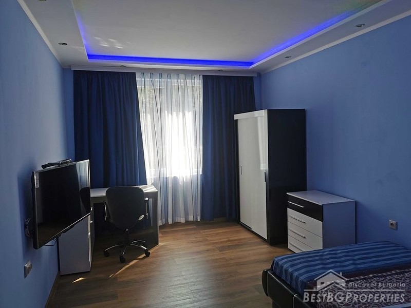 The apartment is after a major renovation and has not been used ever since. Everything in it is brand new - tiles, parquets, doors, furniture, mattresses (TED), curtains, household appliances and TVs. The lighting throughout is LED, and there are also LED strips installed in all rooms, which create an additional sense of luxury and comfort. The windows are double-glazed with PVC and have a high height to let in more light.