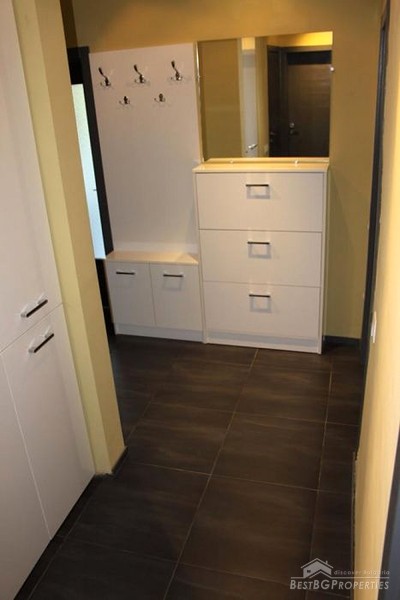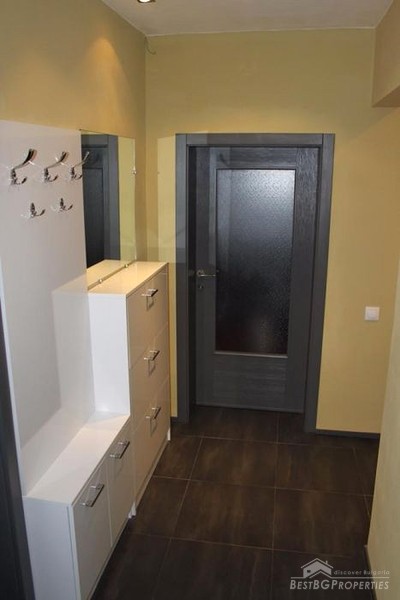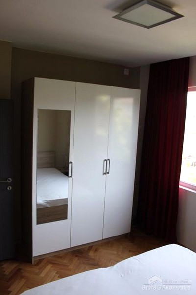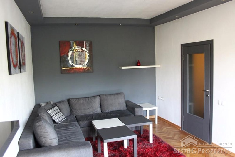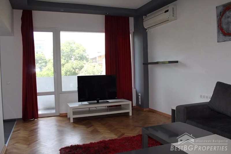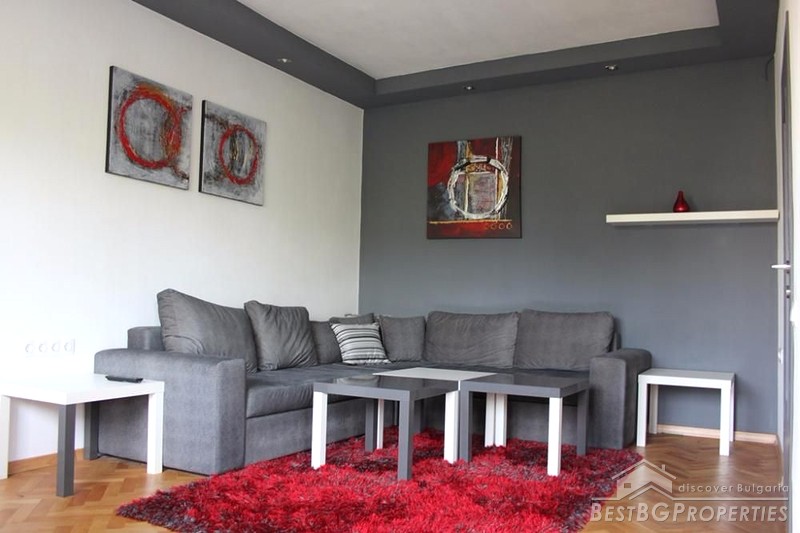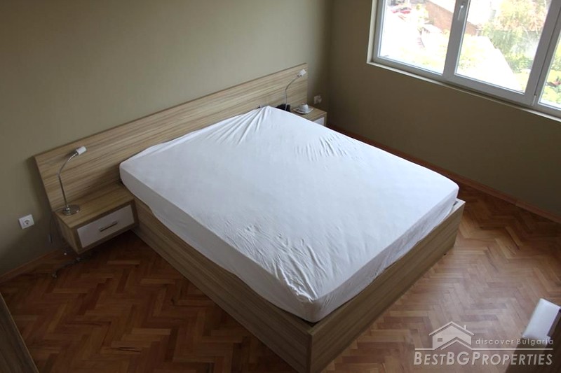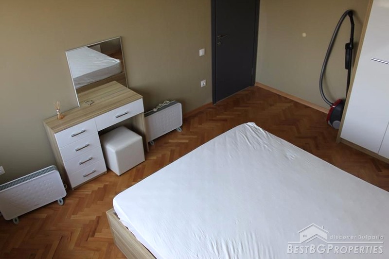 The apartment is very spacious, with two bedrooms. It is after complete renovation - natural parquet in the living room and bedrooms, Italian granite in the dining room and the corridor, equipped bathroom and separate toilet. There are new windows, replaced electric and plumbing installations, SOT installation, new furniture and appliances (inverter air conditioner, central heating), armored front door.