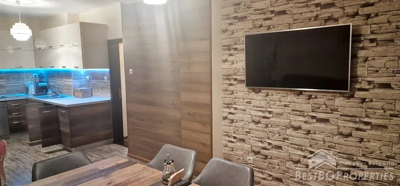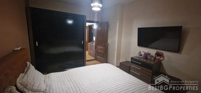 The apartment consists of an L-shaped corridor, a toilet, a bathroom, a living room with a kitchen with a terrace and 2 bedrooms. It is after major renovations. The floors are laid with natural parquet, laminate and terracotta. All external walls are insulated with wadding and plasterboard. The window joineries are PVC - golden oak. Installed interior doors with natural veneer. The front door is armored. The heating is via 2 Daikin hyperinverter air conditioners. The apartment is sold with all electrical appliances - Miele washer and dryer, Bosch dishwasher, Samsung TVs.
