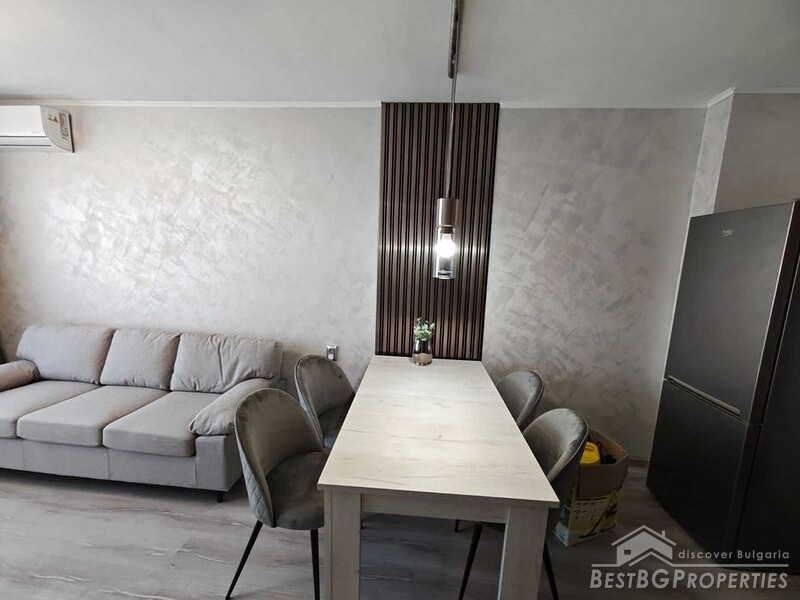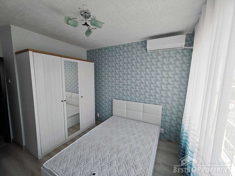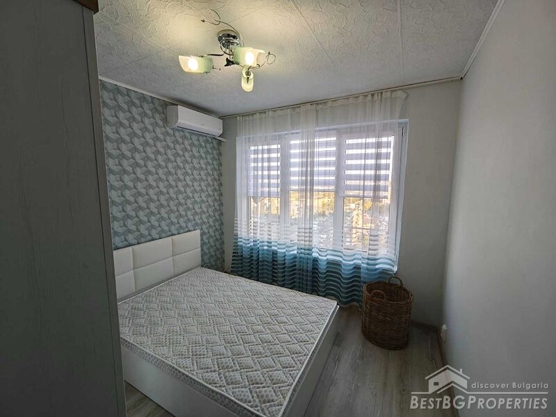 The apartment is equipped with two air conditioners and modern furniture and appliances, all included in the price. The property is ideal for both living and investment, as it is currently rented for 1100 BGN/month, guaranteeing profitability from the day one.