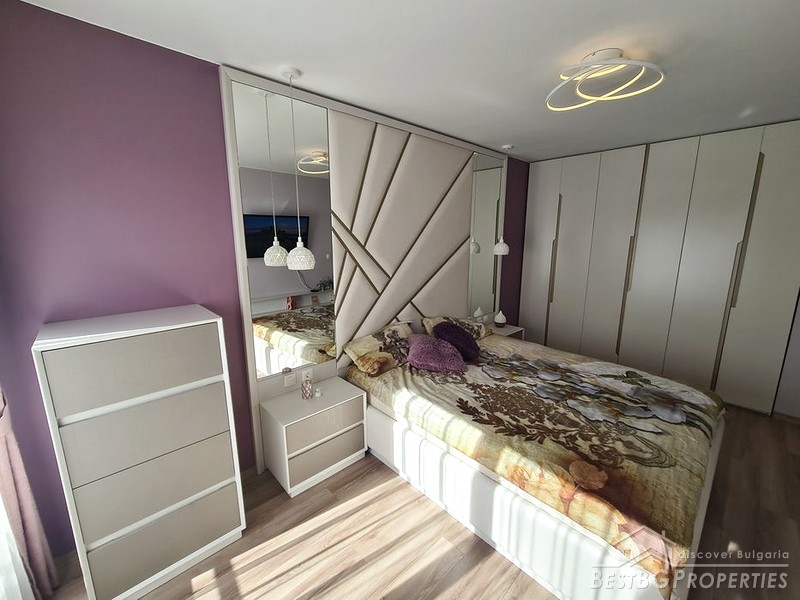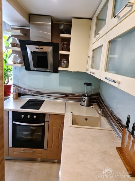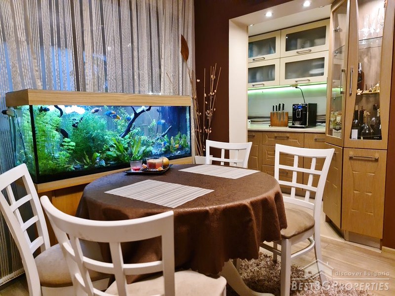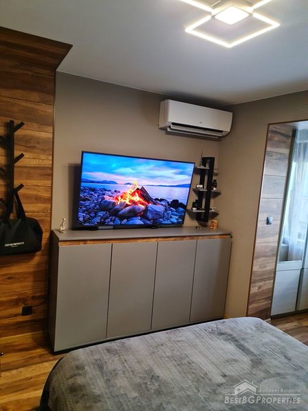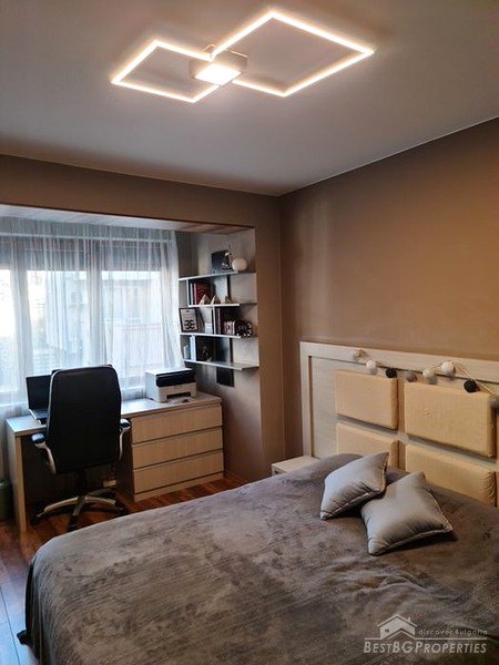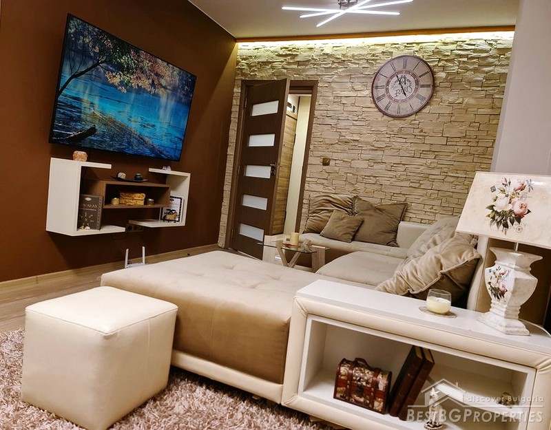 For sale is a luxury furnished apartment with a total living area of 89.89 sq m, located on the 1st floor, in a four-storey brick building in the ideal center of Blagoevgrad.