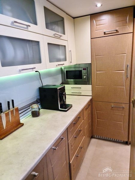 The furniture is high class, custom made. Everything is designed to ensure maximum comfort and convenience. The apartment is equipped with high-end appliances, such as Samsung QLed 65 ”and 55” TVs, completely replaced LED lighting still under warranty, new Fujitsu air conditioners and others. The kitchen is equipped with all necessary built-in appliances (refrigerator, dishwasher, oven, ceramic hob, microwave, etc.)