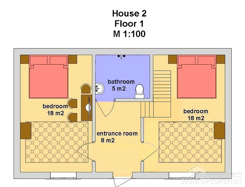 1st floor- 2 bedrooms, a corridor, wooden staircase to the second floor, bathroom and toilet