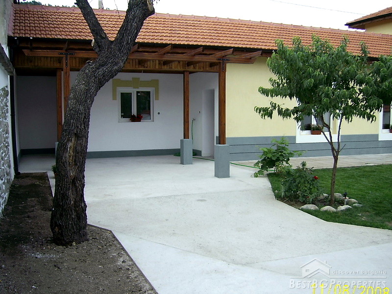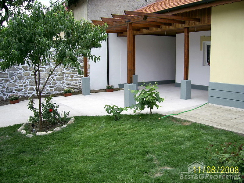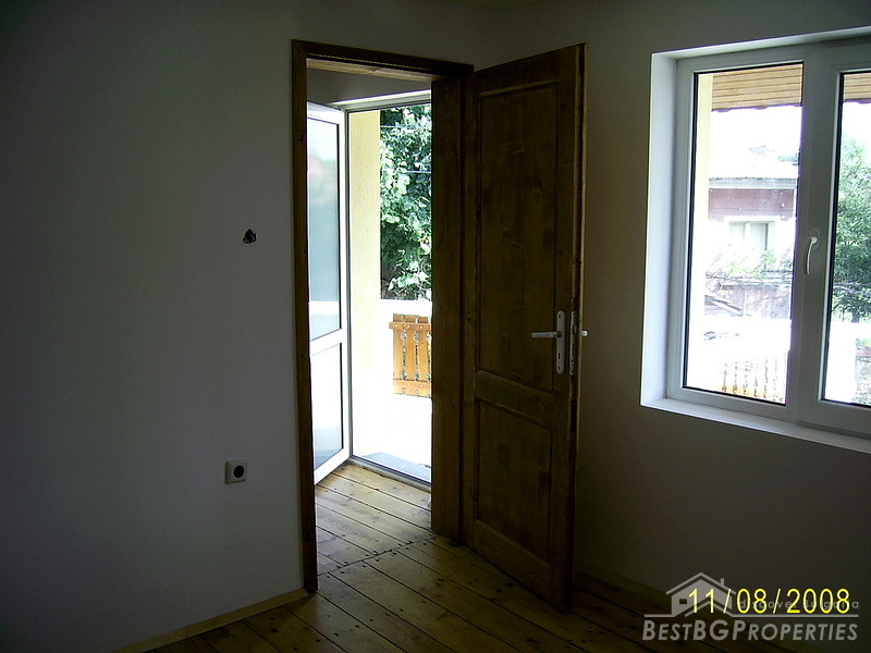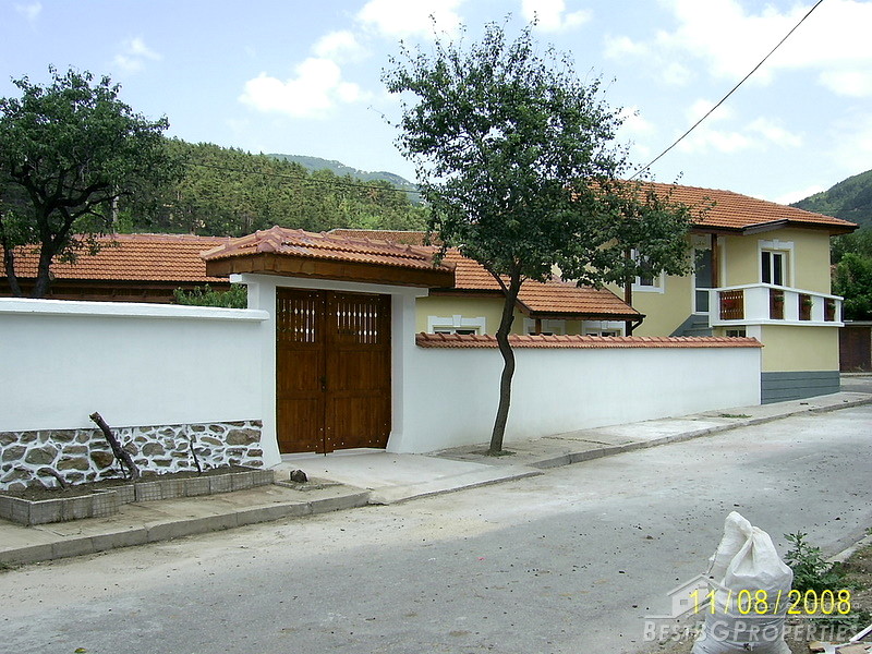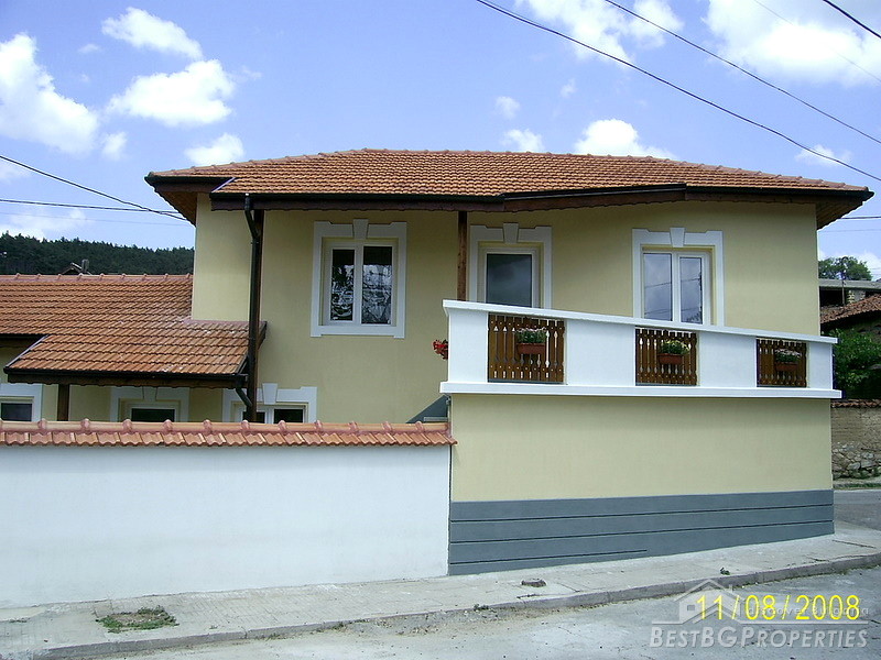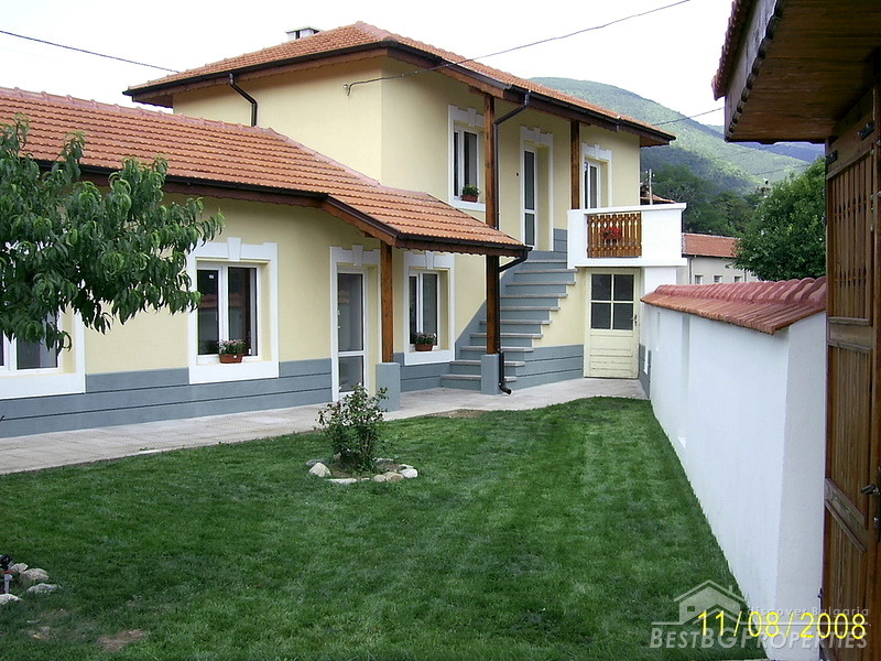 The house is situated in Central Bulgaria, region of Stara Zagora, at the foot of the mountain Stara Planina. The settlement is small and quiet, but is center of the municipality. It has two schools, hospitals, branches of banks, 2-3 restaurants, discos and caffes. The mountain, north of it is very beautiful and was famous place for hiking, picnics and hunting. Hunters come here from all over the world. There are plenty of rivers and springs in the area. There are 2 lakes in the region as well. The city of Stara Zagora is only 23 km away and the beautiful Kazanlak is just 11 km far. The total living area of the house is 166 sq m distributed between 4 bedrooms, 3 bathrooms with toilets, a living room, 2 entrees and a small storage room. The house has been completely renovated with: new roofs, new plumbing and electrics, new windows and new wooden internal doors and new rendering. The floors on the second floor are wooden and on the first floor they are ready for either tiles or laminate. The house is located on an asphalt road and it is easy accessible all year around.