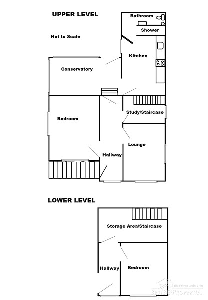 - First floor – hallway, storage, staircase, one bedroom.