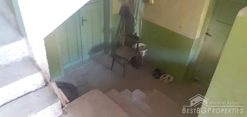 The house has an area of 68.00 sq m and is built on a plot with size 1568.00 sq m. It has two floors in total. The first floor consists of a kitchen, basement, bedroom and internal staircase. The distribution of the second floor is as follows: kitchen, living room, two bedrooms and a large terrace with an external staircase. The house has two entrances.