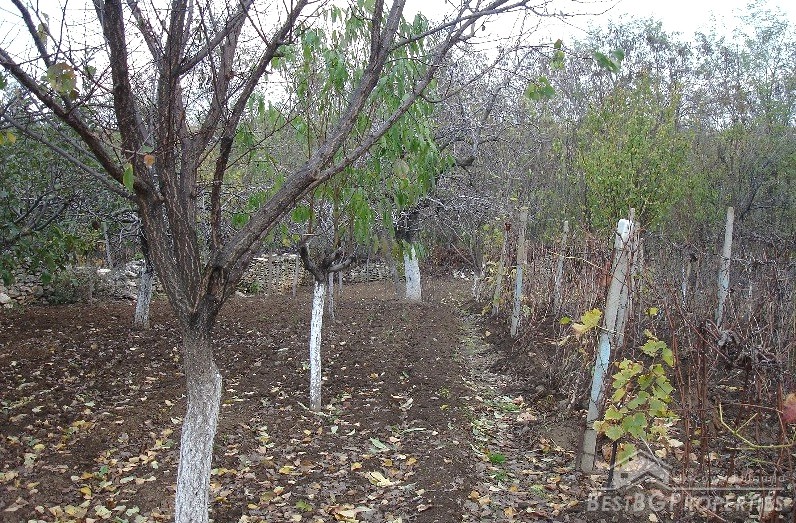 In the front part of the yard there is a summer kitchen, a bathroom, a garage and a garden with a gazebo. In the backyard, there are few farm buildings, two toilets, glasshouse, fruit trees and four rows of vineyards.